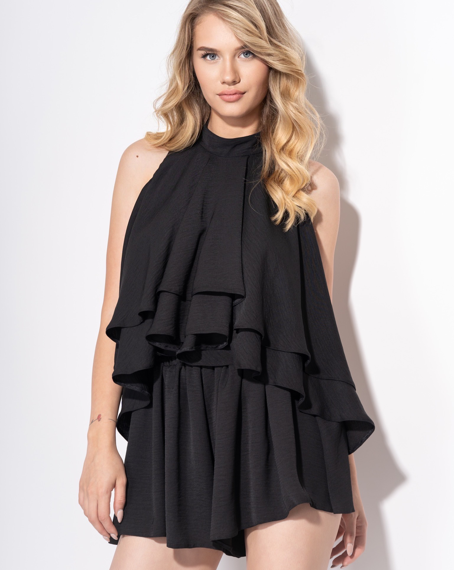 * top - highly flared, two layers of frills and a back with crystal straps, which are like a real jewel on the dress.